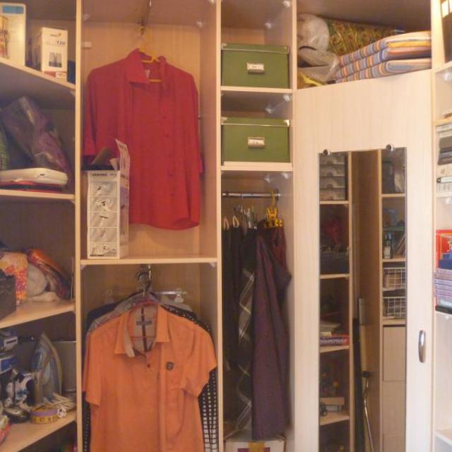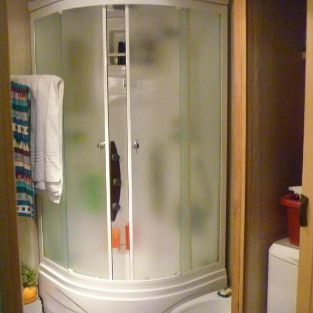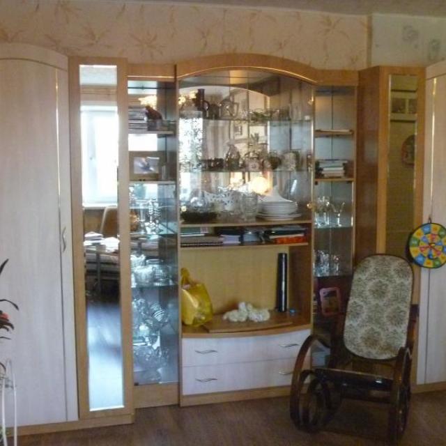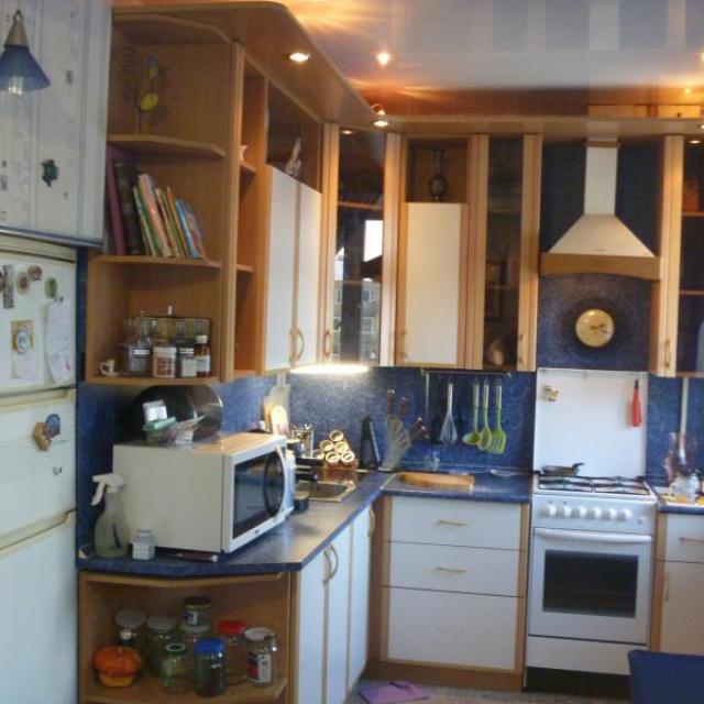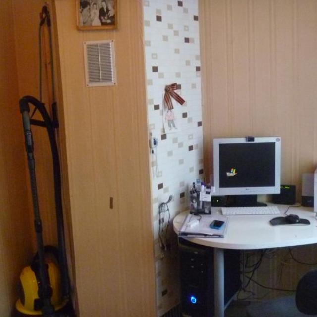 На окнах стеклопакеты, очень широкие подоконники. Все окна, кроме спальни выходят на проспект Коминтерна. На кухне большой кухонный гарнитур, под подоконником зимний холодильник, натяжной потолок, 2 окна, холодильник вставлен в нишу (с хоз.шкафом над ним). Из 4-х батарей отопления 2 алюминиевые итальянские, 2 оставлены раритетные чугунные в хорошем состоянии. Пол в прихожей/гостиной ламинат, на кухне и гардеробной – линолеум, в ванной комнате – плиты, в спальне – ковролин. В гардеробной/кабинете стационарно смонтированы книжные полки, а так же полки, шкафы, шефлоты для вещей. Подключен комп с интернетом от ДОМ.РУ на 100 Мбт+КТВ. Имеется откидной столик для мастерства. Входные двери двойные металлические с автоподсветкой между дверями. Балкон с полностью стеклянной дверью, не огорожен, с хозяйственным шкафом. Во всех комнатах имеются различные подсветки. Под окнами дома остановка автобусов. Двор озеленён. Соседи хорошие, спокойные, молодые.