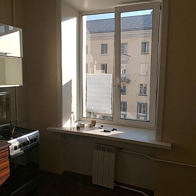 • Состояние квартиры: Пластиковые окна, заменены трубы и радиаторы. Туалет и ванна под кафелем. В коридоре стеновые панели. На полу линолеум, входная дверь заменена. Реальному покупателю торг. Кухонный гарнитур остаётся.