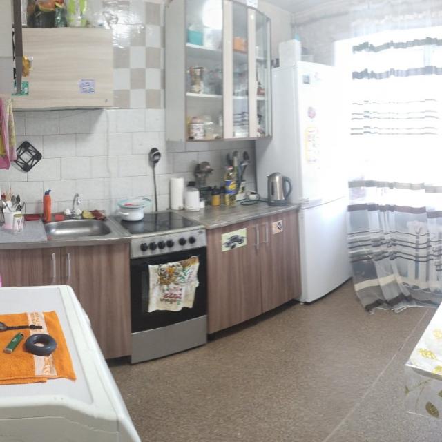 Стеклопакеты, линолеум, натяжные потолки. Кухня большая, балкона нет, санузел раздельный.