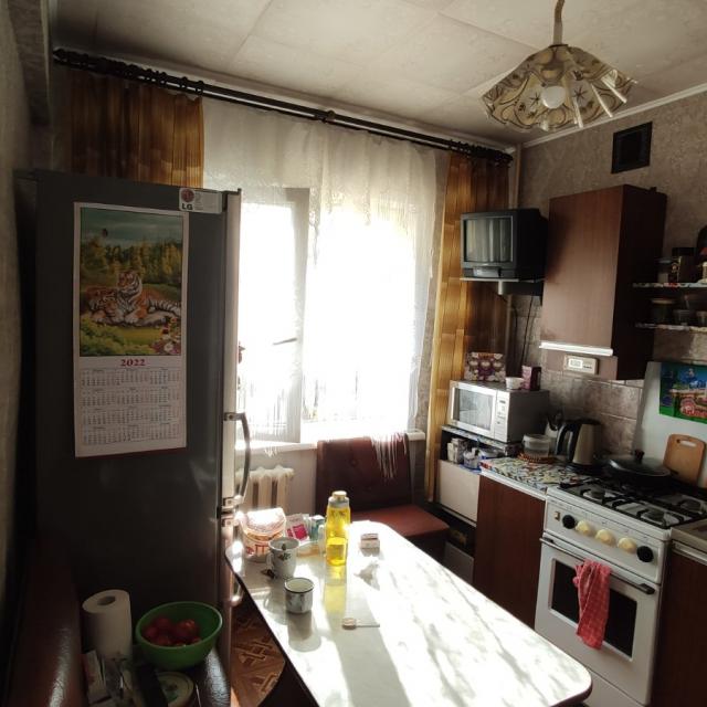 Квартира в нормальном, жилом состоянии (установлены стеклопакеты, на полу линолеум, балкон остеклен, в санузле частично стеновые панели, счетчики ХГВ)