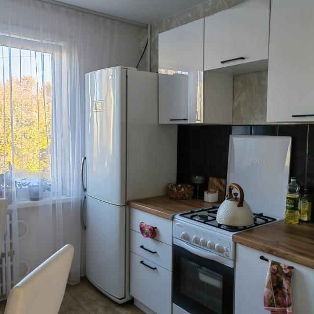 Сделан качественный косметический ремонт. Установлена евродверь и межкомнатные двери, смонтирован натяжной потолок, уложен линолеум. Балкон евро.