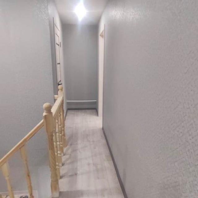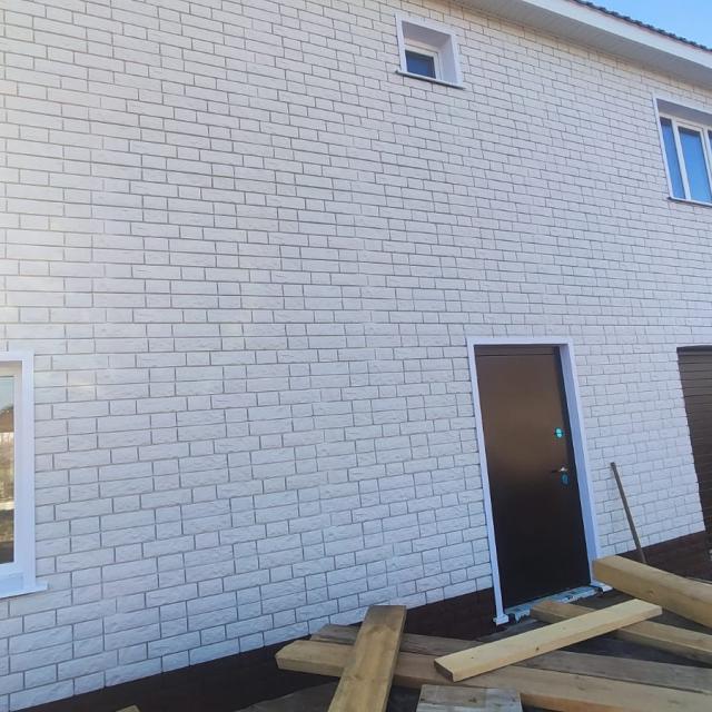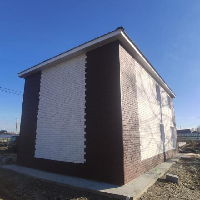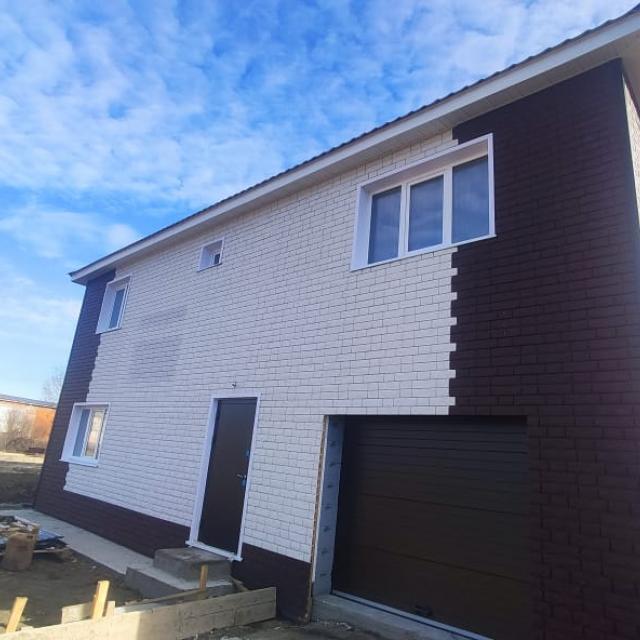 Продается 2-х этажный жилой дом из газобетона +утеплитель, внешне обшит сайдингом под кирпич, фундамент монолитная плита. Первый этаж - кухня+гостинная , жилая комната, санузел, гараж. Второй этаж – две детских комнаты, спальня, санузел. Ремонт будет полностью сделан под «ключ» - коридор теплый пол/керамогранит, комнаты линолеум, стены обои, натяжные потолки, межкомнатные двери, отопление –эл.котел, хол.вода –центральная, септик. Участок будет огорожен металопрофилем, ворота откатные.