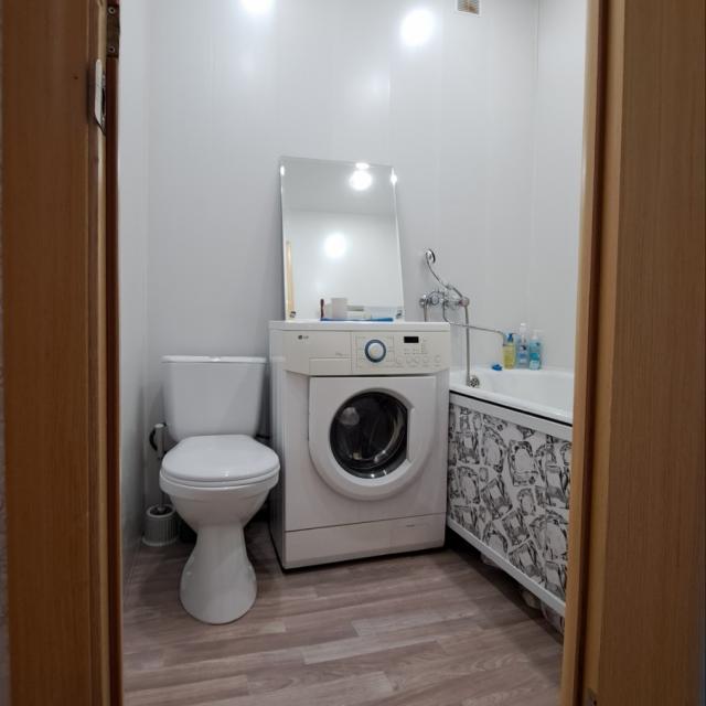 санузел облицован стеновыми панелями, сантехника в норме, натяжной потолок, свежий косметический ремонт, заменены межкомнатные двери